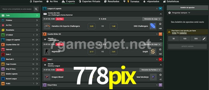 A aposta 778pix oferece aos jogadores a experiência mais conveniente de apostas em eSports!